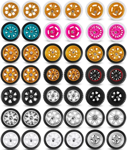 Características: Actualiza tus modelos de coches a escala 1: 64 con estas ruedas de 1/64. Este paquete incluye 21 juegos de ruedas, por lo que es una opción ideal para reemplazar accesorios de automóvil modelo. Las ruedas de repuesto para automóviles modelo son adecuadas para entusiastas y coleccionistas de automóviles modelo. Este paquete funciona como un regalo deseable debido a la gran cantidad y diversos estilos. Especificaciones: Material principal: caucho Color: como se muestra en la imagen. Tamaño: como se muestra en la imagen. El paquete incluye: 21 juegos de ruedas escala 1/64 Notas: Medición manual, puede haber ligeras diferencias en el tamaño. El color puede variar ligeramente debido a las diferentes pantallas. Los más pequeños deben usar nuestro producto bajo la supervisión de adultos. Se incluyen artículos pequeños, mantenlos alejados de los más pequeños en caso de riesgo de asfixia. Mantenlo alejado de personas menores de 12 años.