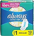 Always Almohadillas ultrafinas tamaño 1 de absorción regular sin perfume con alas, 10 unidades, el embalaje puede variar