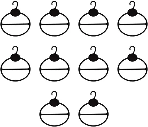 Perchas para bufanda Color: Negro; Material: Plástico Dimensión total de la unidad: 5 ''W x 5-7/8'' H *Estimación solamente* Peso: 5 oz *Estimación solamente*; Peso del envío: 7 Oz *Estimación solamente* Cantidad: 10 PC por orden