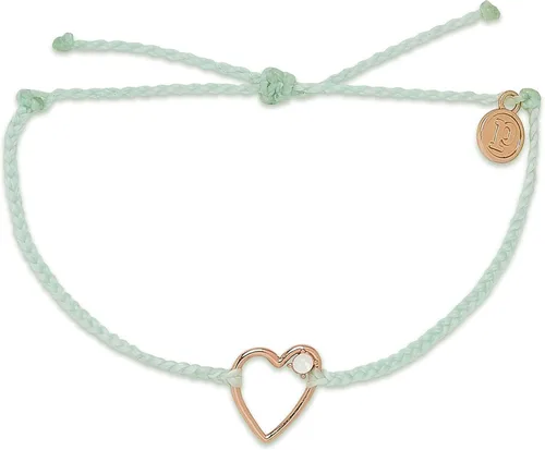 Pura Vida Pulsera de piedra de amor chapada en plata o oro rosa con cristal checo morado o blanco, banda ajustable, 100% impermeable