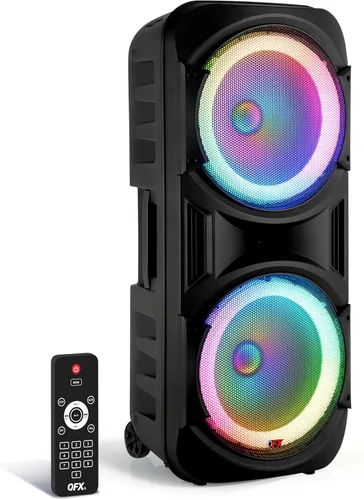 Sonido explosivo: este altavoz dual de 12" viene equipado con controles de graves y agudos, luces LED circulares, radio FM y compatibilidad con Bluetooth para escuchar sus canciones favoritas a su manera preferida. True Wireless Stereo (TWS) Conectividad: añade otro altavoz QFX PBX-2012 y disfruta del sonido estéreo inalámbrico de tus altavoces. Para configurar TWS, primero conecte cada altavoz PBX-2012 a Bluetooth y luego presione un botón en uno de los altavoces para conectar ambas unidades en una configuración TWS. ¡Ahora puedes reproducir música desde tu dispositivo y escucharla en verdadero estéreo inalámbrico! Versátil: Disfrute de la mejor experiencia de grabación y escucha con puertos de tarjeta USB y TF, entradas AUX y micrófono, y un control remoto. Adaptable: Este altavoz se puede configurar horizontal o verticalmente, para una colocación óptima en una fiesta, concierto u otro evento de entretenimiento. Recargable: un adaptador de CA incluido para la batería interna carga rápidamente el altavoz para que pueda disfrutar de un largo tiempo de reproducción y escucha continua.