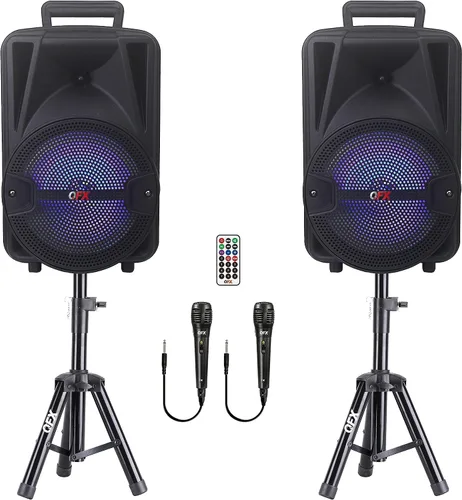 Asistencia: Comunícate directamente con QFX a [email protected] para preguntas, problemas o inconvenientes. Conectividad True Wireless Stereo (TWS): Añade otro altavoz QFX PBX-800TWS y configura TWS conectando cada altavoz PBX-800TWS a Bluetooth y luego presionando un botón en uno de los altavoces para conectar ambas unidades en una configuración TWS. Conectividad máxima: Este sistema de altavoces Bluetooth incluye radio FM, entrada AUX, reproducción de música USB/TF y woofers de luz LED RGB para DJs, streaming, karaoke o organización de eventos. Recargable: No necesita baterías, el PBX-800TWS incluye un cable de carga rápida para que pueda estar listo para disfrutar en fiestas de cumpleaños y festividades. Portátil: 6 libras. El sistema de altavoces incluye un mango de agarre y un práctico tamaño de 9 x 8 x 14 pulgadas para que puedas llevar la fiesta sobre la marcha
