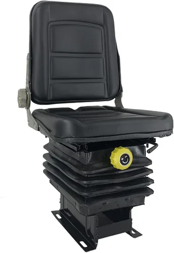 poliuretano cuero Ajustador de ángulo: El ángulo del respaldo se puede ajustar, con ángulo trasero ajustable de 140°. El ajustador de ángulo es flexible y robusto. Absorción de impactos de resorte, fuerza ajustable: Asiento mecánicamente suspendido. El asiento viene con una suspensión. La almohada de primera clase de espuma en frío, altamente elástica con alta densidad, exquisita, cómoda y elegante. Absorción de impactos de resorte, fuerza ajustable: Asiento mecánicamente suspendido. El asiento viene con una suspensión. Estructura de la placa base: Hay rieles deslizantes en la parte inferior del asiento que son fáciles de instalar. También es posible perforar orificios de montaje adicionales. Si los orificios de montaje delanteros y traseros no son apropiados, taladre agujeros directamente en los rieles. Los orificios de montaje son de 7.087 in de ancho (de izquierda a derecha) y 9.055 in de profundidad (de adelante hacia atrás), adecuados para la mayoría de carretillas elevadoras.