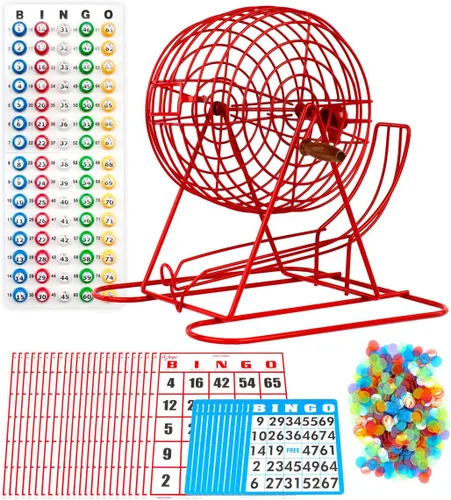 Configuración rápida: Este juego de bingo es fácil de configurar, preparándote para un juego emocionante en minutos. Incluye una jaula de bingo gigante de metal de 11 pulgadas, un tablero maestro, 75 bolas de bingo con ventana, 18 tarjetas estándar, 25 tarjetas jumbo reutilizables, y 50 fichas de bingo coloridas. Cartas de bingo de letra grande y resistentes: Cada una de las 18 tarjetas de juego de bingo presenta números grandes y audaces, lo que facilita la lectura y permite disfrutar de una experiencia de juego más inmersiva, ¡y las bolas de bingo transparentes son duraderas para que puedas jugar durante mucho tiempo! Fichas coloridas: El juego de bingo para adultos incluye fichas vibrantes y transparentes en colores brillantes, añadiendo un elemento divertido y atractivo a cada ronda y facilitando el marcado y seguimiento. Giro sin problemas: Equipado con una jaula de bingo de 11" con un asa de madera, este kit de bingo asegura un juego justo con selección aleatoria de bolas. El selector con peso evita atascos, mientras que la amplia bandeja mantiene las pelotas organizadas y sin derrames. Favorito de Fiesta: Ideal para eventos sociales, reuniones festivas y actividades para adultos mayores, este versátil juego de jaula de bingo y bolas reúne a todos para un disfrute y emoción compartidos.