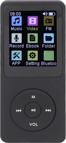 Mini y portátil: gracias al pequeño tamaño y peso ligero de este reproductor de MP3, cabe en tu bolsillo y es fácil de llevar para correr, gimnasio, caminar, viajar y disfrutar de la música en cualquier momento y en cualquier lugar. [Lectura electrónica de libros] Este reproductor de música tiene una pantalla a color de 1.8 pulgadas para un uso más fácil, lo que te proporciona una experiencia de lectura de libros electrónicos cómoda e inteligente. Admite el tipo de archivo TXT, lleve una gran cantidad de libros con usted. [Bluetooth 5.0] Reproductor de música MP3 con versión Bluetooth 5.0, más rápido, mayor distancia de conexión y fuerte capacidad antiinterferencia. Puede conectar auriculares o altavoces Bluetooth y disfrutar jugando música. Multifunción: reproductor de MP3 con música incorporada, lector de libros electrónicos, visor de imágenes, video, grabadora de sonido, Bluetooth, despertador, lector de tarjetas, etc. La tarjeta de memoria (no incluida) debe insertarse y utilizarse, admite hasta 64 GB de expansión. Altavoz HD: el reproductor MP3 Bluetooth tiene un altavoz HD integrado con chip de decodificación de sonido premium, puedes convertir mejor el código fuente a tu sonido original y disfrutar del sonido HiFi inmersivo, para los amantes de la música.