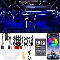 Interior Car Lights, 9 in 1 Car LED Strip with Wireless APP/RF Remote/Button Control, 16 Million Colors Ambient Lighting Kit with 5 Fiber Optic LED