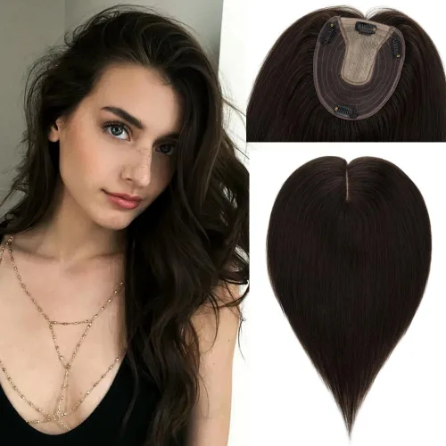 Rich Choices Toppers para el cabello para mujer, 100% cabello humano real, sin flequillo, 5.1 x 5.9 in, base de seda, clip en la parte superior