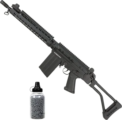Este rifle cuenta con un cuerpo de metal completo, culata plegable y un cargador de 18 rondas, acero de 0.177 in gratis en 3000 unidades. Un riel Picatinny superior permite la fijación óptica, mientras que las miras delanteras y traseras ayudan a apuntar a los objetivos. Cartucho de CO₂ no incluido. El alcance y el soporte se venden por separado.