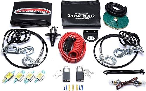 Kit combinado para uso con barras de remolque Falcon 2 y Falcon All-Terrain Roadmaster Incluye cables de seguridad de 8,000 libras de capacidad en espiral a recto y un cable de alimentación en espiral a recto con un enchufe de siete cables También incluye 2 candados (con llave igual), un juego de bombillas y enchufes, y cuatro diodos Viene con una cubierta de vinilo de grado marino para tu barra de remolque, y una bolsa de almacenamiento para tus accesorios de remolque