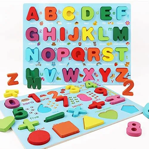 Rompecabezas de madera para niños pequeños, rompecabezas de madera con forma de números del alfabeto, juguetes de aprendizaje para niños y niñas