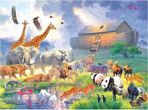 RoseArt Inspriations El rompecabezas de 1000 piezas del Arca de Noé mide 20 x 27 pulgadas cuando está terminado Los rompecabezas de RoseArt están hechos de materiales de alta calidad como cartulina reciclada e impresos con tintas de origen vegetal Disfruta construyendo tu rompecabezas con piezas totalmente entrelazadas que ofrecen un hermoso "SNAP" mientras montas el rompecabezas Cada rompecabezas de RoseArt viene con un póster de bonificación a todo color para una fácil referencia mientras construyes tu nuevo rompecabezas Los rompecabezas de RoseArt son un regalo perfecto para amigos y familiares
