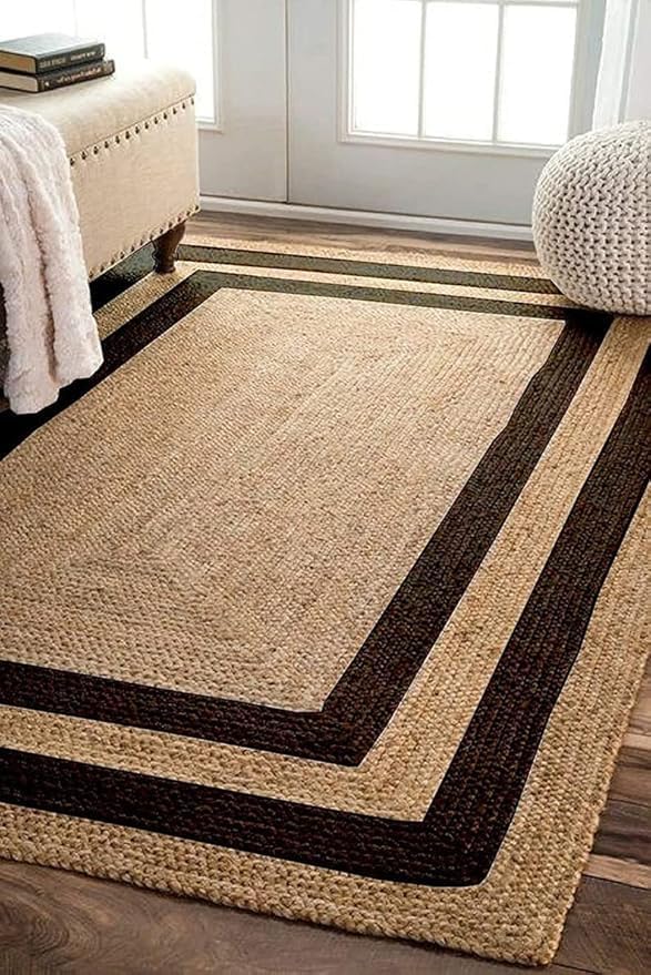 SANWARIYA Rugs, suelo trenzado rectangular con borde de yute, hecho a mano, hecho a mano. (4 pies x 6 pies)
