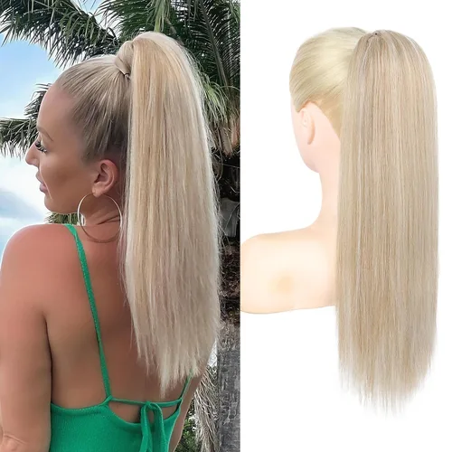 SEIKEA - Extensión de cola de caballo larga con cordón, cola de caballo falsa recta y natural, extensión de cabello sintético suave con clip,