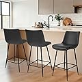 Counter Height Bar Stools Set of 3,FSC Certified Upholstered Faux Leather Bar Stools Set of 3 with Back, Metal Base, 27" Seat Height,Modern