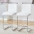 Counter Height Bar Stools Set of 2,25" Modern Bar Stools Set of 2,White Faux Leather Bar Stool with Back,Sturdy Silver Chrome Footrest,Counter