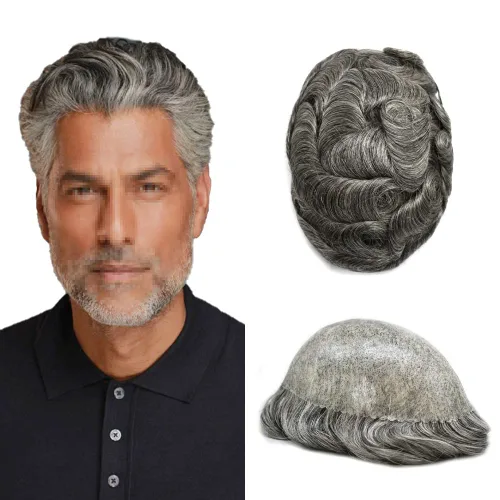 Toupee para hombres, pieza de cabello humano real, sistema de reemplazo de cabello para hombre, prótesis capilar de tupé para hombres, prótesis