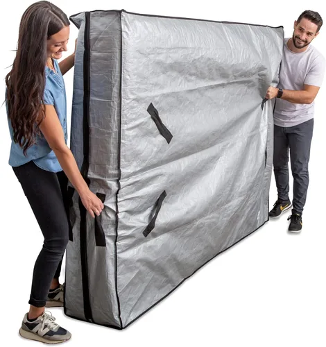 Mover y almacenar tu cama será un pedazo de pastel: ya sea que te mudes a un nuevo hogar o busques colocar una cama en un almacenamiento a largo plazo, nuestras fundas de colchón para mudanza y almacenamiento eliminan todos los dolores de cabeza de ambos; cada bolsa de mudanza de colchón está diseñada para proteger tu costoso colchón de los elementos mientras hace que transportarlo sea muy fácil Equipado con asas adicionales para un fácil manejo y transporte: este protector de colchón móvil está hecho con 12 asas fuertes (4 asas laterales inclinadas de 45 grados, 2 asas delanteras y 2 asas traseras), por lo que obtener un agarre cómodo no será un problema; Además, estas asas estratégicamente colocadas hacen que navegar el colchón a través de lugares estrechos sea mucho más fácil Material de lona reforzado y resistente a desgarros que proporciona una protección máxima: nuestras bolsas de colchón para mudanza y almacenamiento están hechas de una lona impermeable y resistente al desgarro con una cremallera de grado industrial y costuras y bordes reforzados; Este material resistente y lavable crea un escudo impenetrable alrededor de su colchón; protegiéndolo del agua, polvo, suciedad y más Diseñado en los Estados Unidos - Disponible en fundas de tamaño Queen y King: Llevamos un protector de colchón de tamaño Queen impermeable que mide 82 x 63 x 15 pulgadas y pesa aproximadamente 4 libras y una funda protectora de colchón impermeable King que mide 82 x 79 x 15 pulgadas y pesa aproximadamente 5 libras; Ambos están orgullosamente diseñados en los Estados Unidos Productos innovadores creados para facilitar la vida de nuestros clientes: entre el trabajo, las obligaciones familiares y otros compromisos, la vida puede ser bastante agitada a veces, tal vez para ti, todo el tiempo; Nuestra misión es desarrollar productos que ayuden a aligerar la carga, para que puedas pasar más tiempo viviendo la vida al máximo con tu familia y amigos