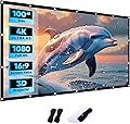 Pantalla de proyector de 100 pulgadas, pantalla de proyector de película 4K HD 16:9 HD plegable y portátil, antiarrugas, proyección para interiores