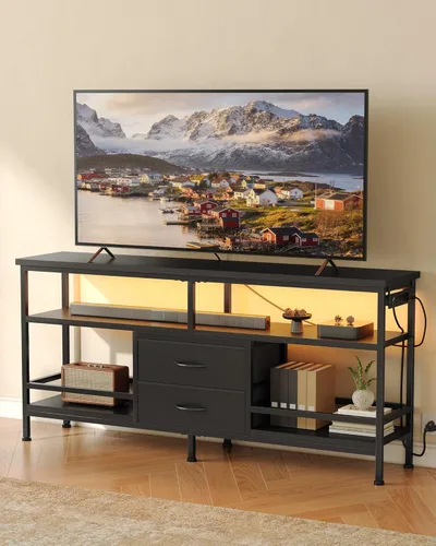 Lazzanto Soporte de TV de 55 pulgadas, centro de entretenimiento para televisores de 43 a 65 pulgadas con luces LED y estación de carga extraíble,