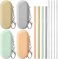 Meanplan Pajitas de silicona reutilizables, juego de 4 popotes de crucero con estuche, reutilizables, de silicona, sin olor, portátil, para fiestas,