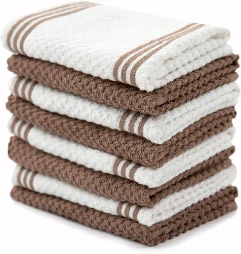 Sticky Toffee Juego de 8 paños de cocina, 100 % algodón, color marrón y blanco, paños de cocina, paños de limpieza reutilizables y absorbentes