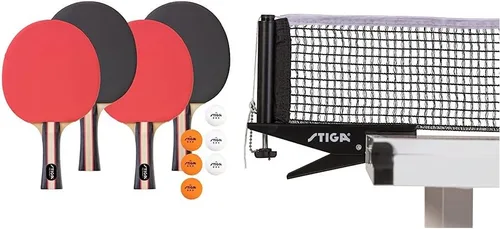 Producto 1: STIGA – Desde 1944, STIGA ha sido el líder innovador en equipos de tenis de mesa. STIGA combina artesanía superior con un rendimiento excepcional en cada producto. Equipo de la más alta calidad para todos, desde aficionados hasta profesionales. Esa es la herencia STIGA Producto 1: incluye: juego de tenis de mesa aprobado por USATT que incluye cuatro raquetas de rendimiento y 6 pelotas de tamaño regulador ITTF de 3 estrellas naranja/blanco de 3 estrellas (1.575 in) diseñadas para ofrecer un rendimiento avanzado en comparación con las paletas recreativas Producto 1: Perfecto para aficionados – Creado para jugadores aficionados que buscan desafiar a sus amigos y desarrollar sus habilidades de tenis de mesa Producto 1: diseño de raqueta: las raquetas tienen un mango acampanado de madera maciza, esponja de 0.059 in y hoja de 5 capas con goma invertida suave de primera calidad para un mayor control de la pelota y mayor giro Producto 2: STIGA – Desde 1944, STIGA ha sido el líder innovador en equipos de tenis de mesa. STIGA combina artesanía superior con un rendimiento excepcional en cada producto. Equipo de la más alta calidad para todos, desde aficionados hasta profesionales. Esa es la herencia STIGA Producto 2: Grado torneo: este juego de red de mezcla de algodón premium de 72 pulgadas y poste de acero resistente es perfecto para jugar en torneos Producto 2: ajustes precisos: el sistema de ajuste preciso de tensión con herramientas de medición de altura te permite jugar como los profesionales Producto 2: ajuste reglamentario USATT: este juego de red y poste de tenis de mesa premium se adapta a todas las mesas reguladoras de 60 pulgadas de ancho de hasta 1 pulgada de grosor