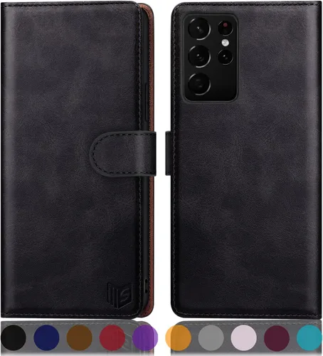 SUANPOT Para Samsung S21 Ultra 6.8 "RFID Bloqueo Funda De Cuero Billetera, Folio Con Tirón, Titular De La Tarjeta, Cubierta A Prueba De Golpes -