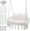 SUNCREAT - Silla de hamaca para colgar con cuerda, capacidad máxima de 450 libras, columpio colgante de macramé extragrande con bolsillo lateral