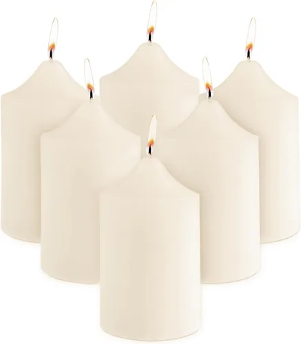 Super Z Outlet Juego de 6 velas de pilar marfil sin perfume para bodas, decoración del hogar, relajación, mecha de algodón sin humo, 2 x 3