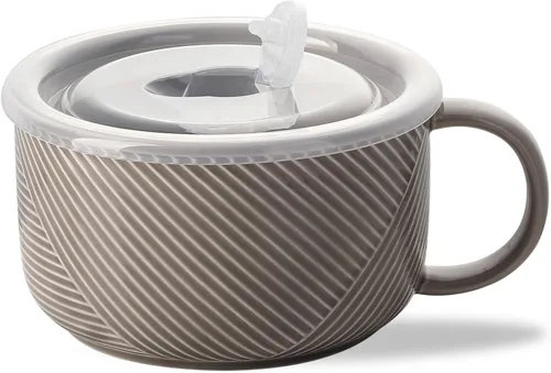 Taza de sopa jumbo: con una capacidad máxima de 38 onzas y un diseño profundo y recto, nuestro tazón de sopa de cerámica es perfecto para servir grandes porciones de sopa, ensalada, pasta, cereales, fideos y más, sin derrames Conservación de alimentos: nuestro cuenco de cerámica cuenta con una tapa sellable con bordes de silicona para mantener los alimentos frescos y calientes durante más tiempo. Es ideal para almuerzos en la oficina, preparación de comidas, viajes de camping, pícnics y otros eventos al aire libre Diseño excepcional: nuestro tazón de sopa de cerámica gris cuenta con un patrón de rayas único y un esmalte suave que es fácil de limpiar. El diseño simple pero elegante cuenta con un asa grande para un fácil transporte Fácil de usar: nuestros cuencos de sopa están hechos de cerámica, que es resistente a altas y bajas temperaturas y no afectará el sabor de los alimentos. Son aptos para microondas, lavavajillas y congelador Manejo cómodo: El mango agrandado del tazón de cerámica te da un agarre cómodo incluso cuando el tazón está lleno de comida caliente