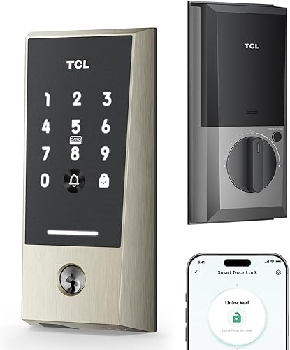 TCL Wi-Fi Smart Lock D2 - Cerradura de puerta de entrada sin llave, timbre integrado, teclado de pantalla táctil, control remoto de aplicaciones