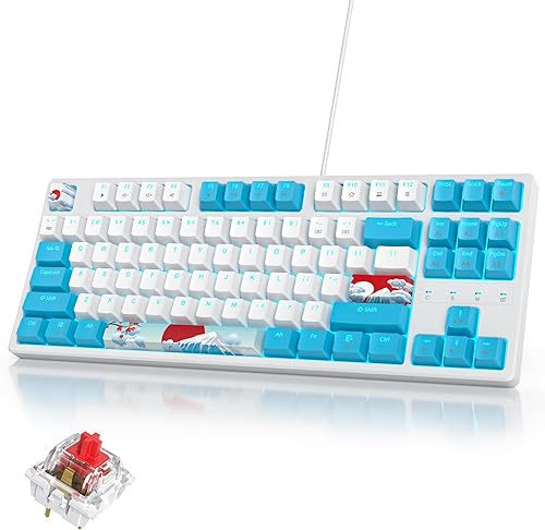 Teclado mecánico 75% para juegos con interruptor rojo, teclado retroiluminado LED RGB blanco y azul, 87 teclas compacto TKL teclado de computadora