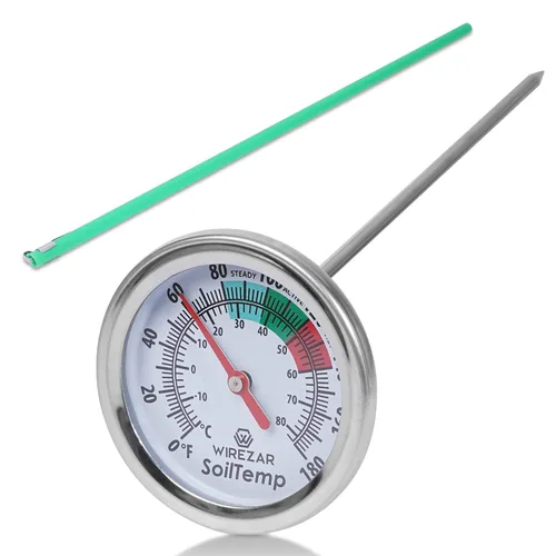 Termómetro de suelo de compost, termómetro impermeable de temperatura del suelo, vástago de acero inoxidable de 5 pulgadas, ideal para suelo,