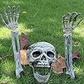 UMEELR Decoraciones realistas de Halloween con estacas de esqueleto, 3 piezas, cabeza de cráneo, brazos con estacas, decoración de esqueleto negro