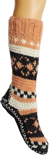 Tibetan Socks Hand Knit Wool Fleece Lined Long Slipper Socks with Non Slip Soles