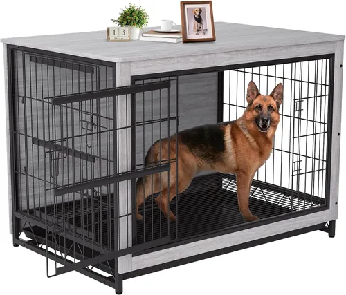 Resistente y resistente a las masticaciones: la jaula para perros de alta resistencia está hecha de tablero de partículas y marco de acero grueso para una mayor resistencia a la masticación. El panel superior resistente puede soportar hasta 330 libras. El marco de acero pintado horneado a alta temperatura garantiza que no se oxide. Soporte de tablas adicionales en la parte delantera de la jaula para perros. Los bordes superiores redondeados evitan eficazmente golpes accidentales y mejoran la seguridad de usar la perrera para perros en interiores. Diseño de puerta doble: los muebles de jaula para perros tienen 2 puertas (1 puerta delantera y 1 puerta lateral). Las puertas dobles están diseñadas para adaptarse a diferentes entornos de uso, convenientes para que los perros entren o salgan. Cada puerta está equipada con pestillos para evitar que las mascotas muy ansiosas abran puertas para escapar. Controla la apertura y el cierre de puertas. 2 FORMAS DE USAR LA BANDEJA: Los muebles grandes para perreras tienen una bandeja extraíble en la parte inferior. Coloque la bandeja móvil debajo de la malla inferior para recoger los residuos, el pelaje y la suciedad para mantener el refugio de su perro limpio sin ensuciar el suelo. Coloca la bandeja extraíble en la parte superior de la malla para proporcionar un lugar de descanso plano y cómodo para tu perro. CRATCH MULTIUSOS PARA PERROS: La jaula para cachorros funciona como mesa auxiliar, mesa auxiliar o mesita de noche para complementar la decoración del hogar. La parte superior ancha proporciona un amplio espacio para artículos como plantas, comida para perros, marcos de fotos y lámparas. Úsalo como corralito para mascotas cuando se retira el panel superior. La buena ventilación de la perrera de metal mantiene la jaula seca, y la vista completa te permite jugar con tu perro sin ningún obstáculo Elige el tamaño correcto: asegúrate de medir los datos de altura y longitud de tu mascota antes de comprar la mesa auxiliar de jaula para perros, y consulta los consejos de compra para elegir la jaula para perros adecuada. Si le resulta difícil elegir, puede contactarnos y dejar la raza, altura y longitud de su mascota, y le recomendaremos la jaula moderna adecuada para usted!