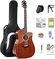 Rosen G31 Guitarra acústica Dreadnought de tamaño completo de 41 pulgadas con tapa de caoba maciza, acabado brillante kit de iniciación con estuche,