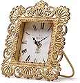 NIKKY HOME Reloj pequeño vintage de mesa, reloj decorativo de estante de escritorio de mesa de estilo francés, funciona con pilas, diseño redondo,