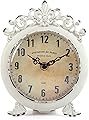 NIKKY HOME Reloj de mesa vintage, Shabby Chic decorativo de peltre, reloj de escritorio de peltre, funciona con pilas para sala de estar, baño,