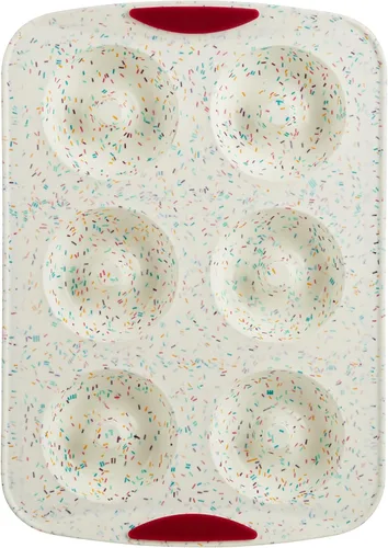 Hornear dulces es una forma única de crear recuerdos alegres para tu familia y amigos. El molde para rosquillas gigante de silicona Trudeau Structure de 6 unidades es muy fácil de usar, ¡todo lo que tienes que hacer es untarlo con mantequilla, hornearlo y sacarlo! ¡Comienza a hornear sin preocupaciones: ¡la bandeja es resistente al calor hasta 428 °F / 220 °C! Parte de nuestras herramientas para hornear diseñadas con orgullo en Canadá, cuenta con bordes de acero reforzado para un manejo seguro. Las recetas de hornear para los niños siempre son mejores con una herramienta antiadherente y flexible que libera golosinas cocinadas uniformemente cada vez. Descubre la perfección, ¡directamente del horno! Este práctico molde para 6 muffins jumbo también es apto para microondas y congelador, ya sea que desees disfrutar tus golosinas ahora o más tarde. ¡Una vez que hayas terminado, simplemente colócalo en el lavavajillas!