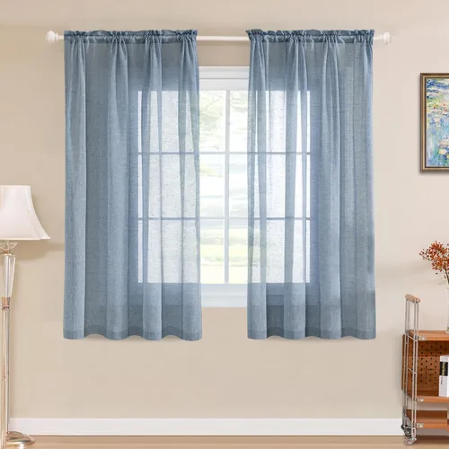 Tela de mezcla de lino. Juego estándar: se vende por par (juego), incluye 2 elegantes paneles transparentes de lino para ventana. Cada panel mide 52 pulgadas de ancho por 84 pulgadas de largo. El juego de paneles mide 104 pulgadas de ancho por 84 pulgadas de largo FILTRACIÓN DE LUZ: Estas cortinas semitransparentes de mezcla de lino natural no son transparentes, permiten el paso de una hermosa luz difusa, creando un ambiente increíble en tus habitaciones, mientras que aún proporcionan suficiente privacidad, disfruta de tu tiempo en familia Aireado y transpirable: fabricado por OEKO-TEX estándar 100 fábrica, efecto natural, libre de vinilo y respetuoso con el medio ambiente, el adorno de textura sólida de tejido abierto proporciona una sensación ligera y aireada, hace el tacto suave y lujoso perfecto Decoración de habitación única: añade a tu casa un aspecto clásico y sofisticado, por lo que puedes combinarlos fácilmente con la decoración de tu hogar existente. Debido a su atractivo discreto, estas cortinas combinan bien en espacios formales e informales, también son más resistentes y duraderas. Fácil de limpiar: lavable a máquina en agua fría. Secado y planchado a baja temperatura. No usar blanqueador. Siempre serás bienvenido para cualquier consulta sobre nuestros productos de la marca TURQUOIZE