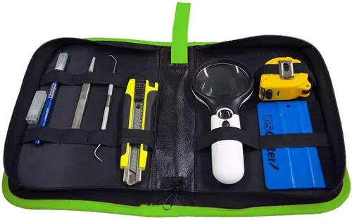 El kit de herramientas de deshierbe de alta calidad contiene una gama de herramientas útiles Viene en una práctica y duradera funda con cremallera para un fácil transporte Las bandas elásticas almacenan herramientas de forma segura en su lugar Incluye: cuchillos, herramientas de deshierbe, cinta, lupa, estuche de transporte Nota: el color de la funda de transporte puede variar