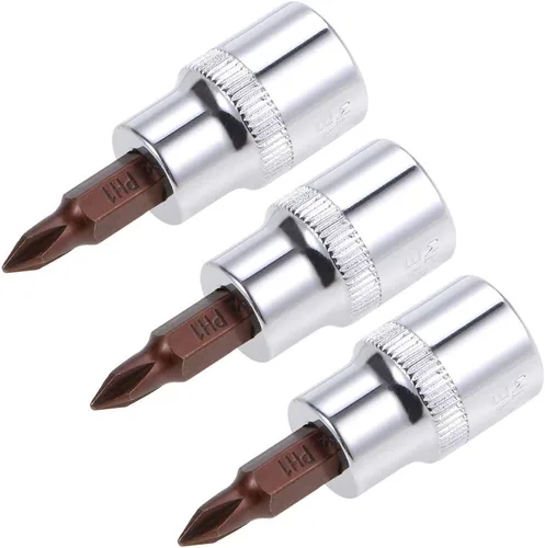 uxcell 3/8" Drive x PH1 Phillips Bit Socket, S2 Brocas de acero, CR-V Sockets 1.890 in Longitud (solo para uso manual), 3 piezas