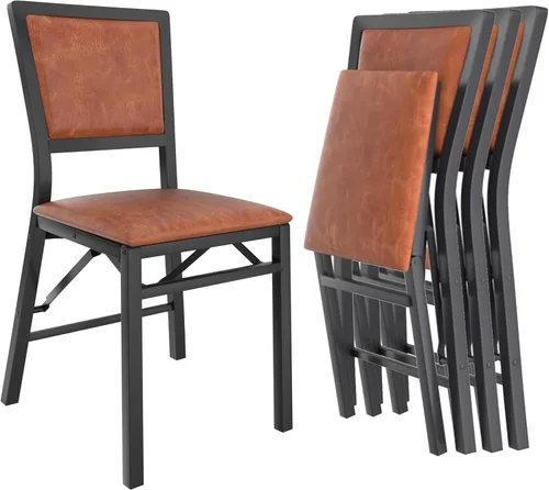 VECELO Paquete de 4 sillas plegables con cojín: cómodas y ahorran espacio para comedor, cocina y sala de estar