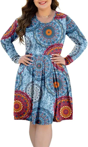 Vestido para mujer tallas grandes, informal de manga larga, plisado con bolsillos