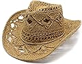 Sombrero de vaquero occidental de verano para mujeres y hombres, sombrero de paja moldeable, sombrero de sol ahuecado, sombrero de playa con cuerda,
