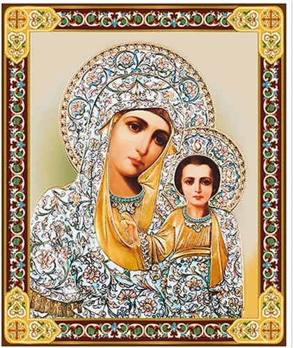 Nuestra Señora Virgen de Kazán y Cristo Niño – Madera – Ten en cuenta que mide 4 3/4 pulgadas de alto x 4 pulgadas de ancho Virgen de Kazán uno de los iconos más queridos de la Virgen en el cristianismo oriental. La Theotokos de Kazán es conocida por su protección hoy y a lo largo de la historia rusa. La imagen de la Virgen está consagrada en un marco tradicional ruso Maravillosa idea de regalo religioso en Navidad, cumpleaños, día de la madre o para tu esquina de iconos Icono colgante de pared viene con soporte - Icono laminado dorado montado en madera Mide 4 3/4 pulgadas de alto x 4 pulgadas de ancho, 1/2 pulgadas de grosor Muy bien embalado