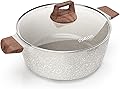 Nonstick Die Casting Stock Pot,6Qt Elegant Aluminum Ceramic Casserole with Lid, Induction Bottom