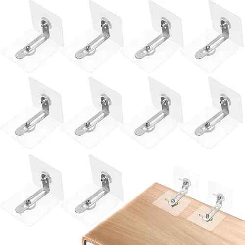 Hecho de adhesivo adhesivo grande y soporte en L de metal inoxidable, que mejora eficazmente la seguridad y estabilidad para mantener tus muebles en su lugar AAdopta almohadillas autoadhesivas resistentes que han sido probadas para una sujeción fuerte, por lo que es fácil pegar y quitar sin dañar la pared Los anclajes para muebles a prueba de bebés se pueden pegar en una variedad de superficies limpias y lisas, como madera, azulejos, cerámica, metal, vidrio y superficies de plástico Los anclajes adhesivos de pared para muebles mantienen la seguridad de los muebles pesados al evitar que se vuelquen y causen posibles accidentes No es adecuado para paredes de yeso pintadas, paneles de yeso, papel tapiz o superficies irregulares; ideal para anclar cajones, armarios, estanterías, aparadores, electrodomésticos y mucho más