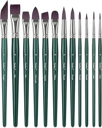 Artist Paint Brushes Set, 12PCS Watercolor Brushes Professional, Water Color Brushes - Round Flat, Liner Filbert Angular Oval Wash & Dagger for Dark